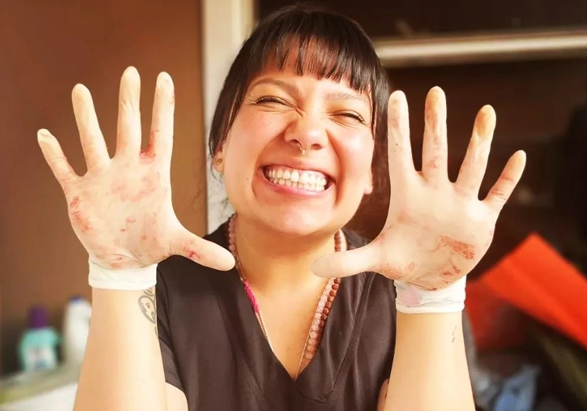 Soy madre de dos hijos, uno en las estrellas y una hija en este plano llamada Shanti. Ella nació en casa, en agua, con el acompañamiento de mi partera Carolina, mi doula y pareja,  en intimidad. Gracias a este magno suceso, llegó la inspiración de vida en acompañar procesos de gestación, parto y posparto de forma libre y revolucionaria, primero como doula y ahora también como partera, proceso de formación que caminé muchos años en compañía de Carolina, como maestra.